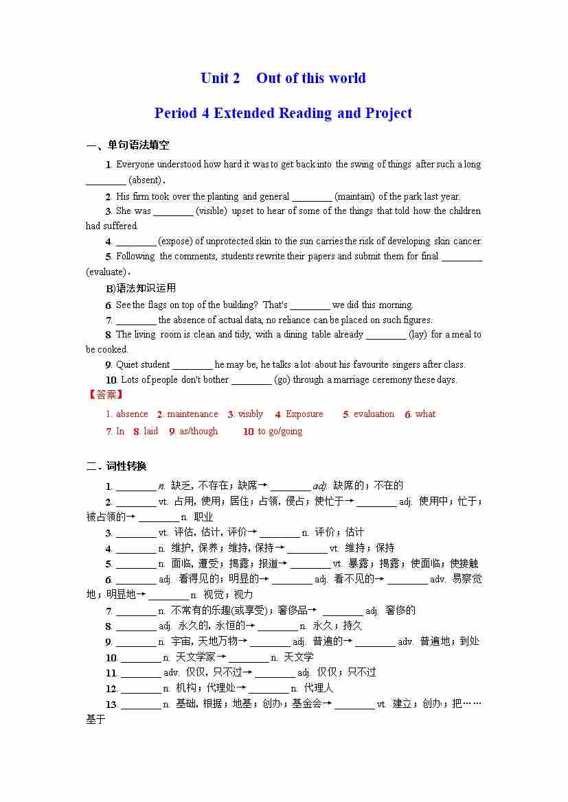 首页 > 全部 > 分层作业 > Unit 2 Out of this world Period 4 Extended Reading(分层练习)(解析版)- (译林版2020选择性必修第三册)