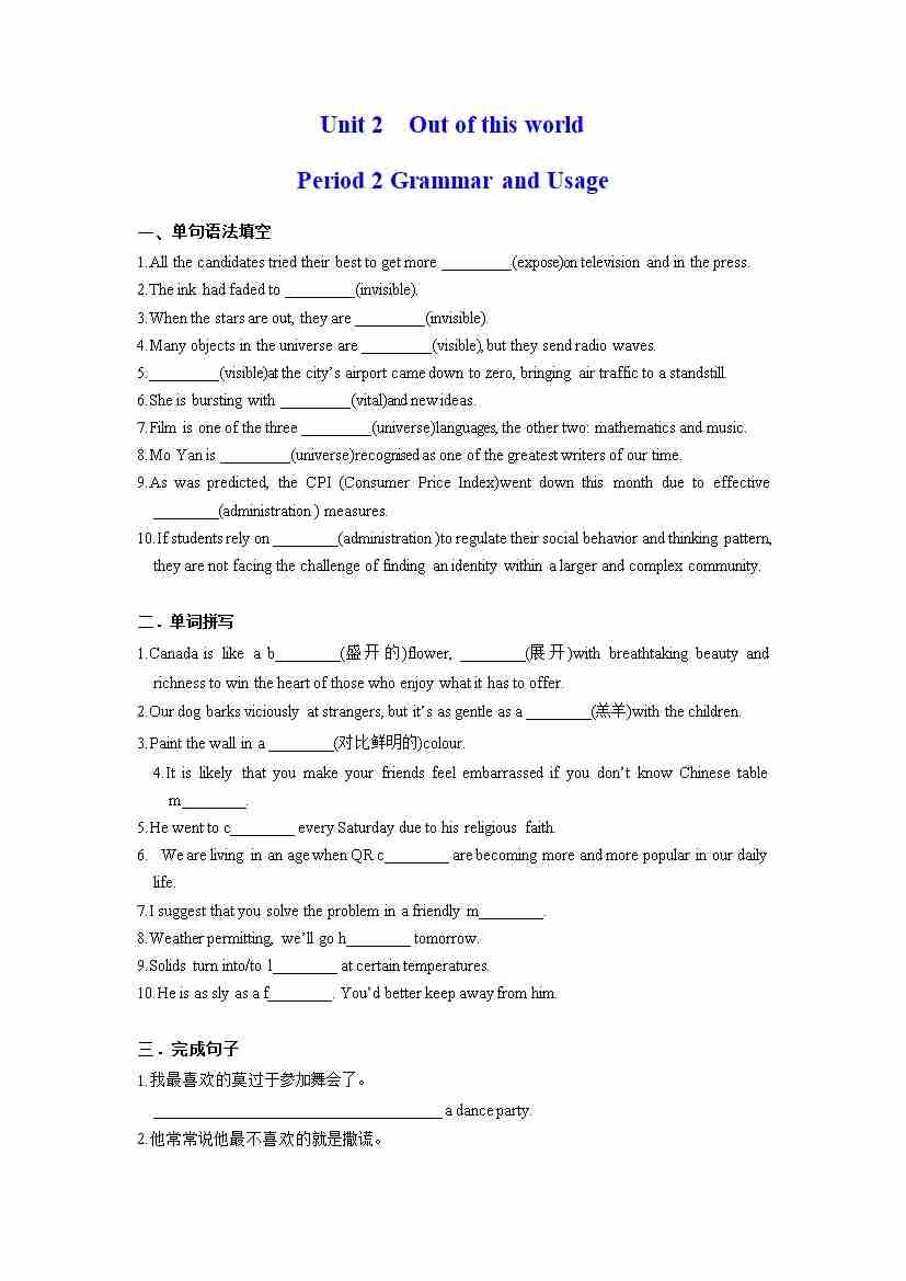 Unit 2 Out of this world Period 2 Grammar and Usage (分层练习)(原卷版)- (译林版2020选择性必修第三册)