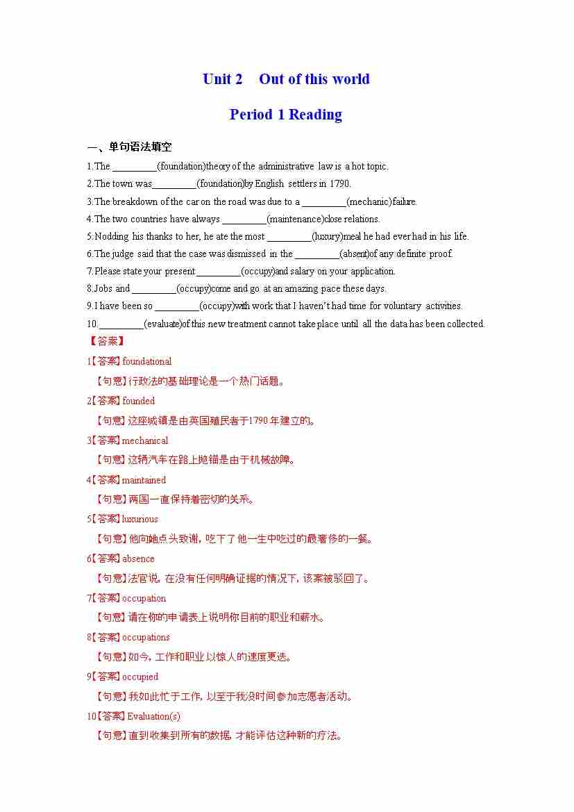 首页 > 全部 > 分层作业 > Unit 2 Out of this world Period 1 Reading(分层练习)(解析版)- (译林版2020选择性必修第三册)