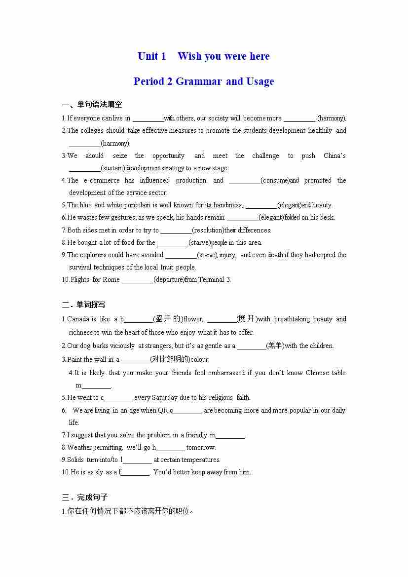 首页 > 全部 > 分层作业 > Unit 1 Wish you were here Period 2 Grammar and Usage (分层练习)(原卷版)- (译林版2020选择性必修第三册)