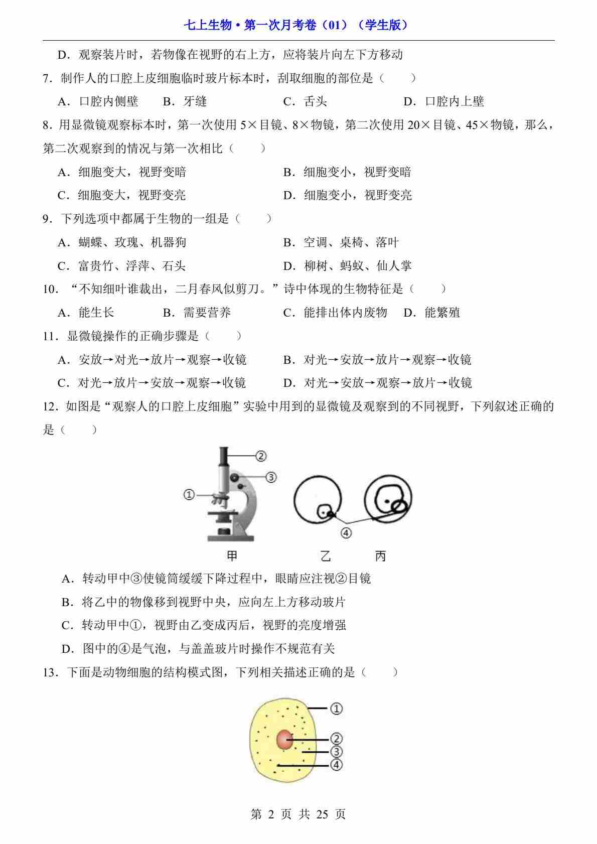 首页 > 全部 > 第一次月考 > 【人教】第1次月考01【第1单元1-2章】