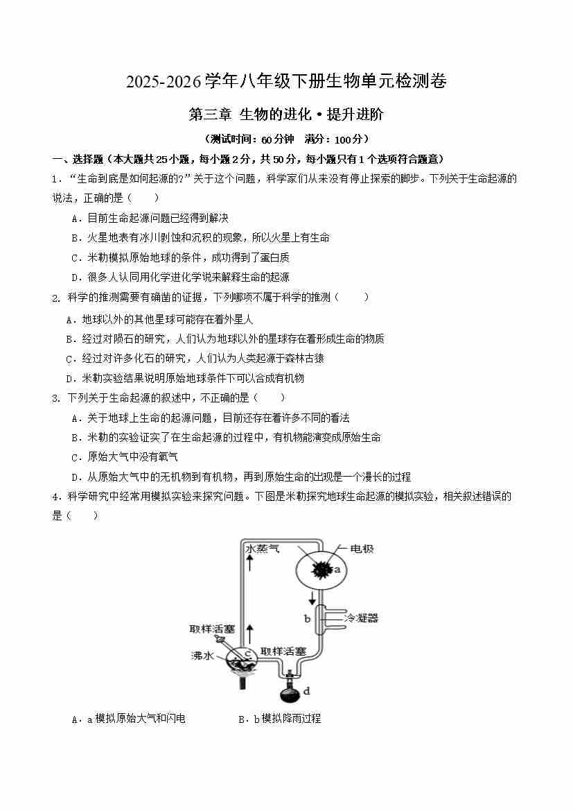 首页 > 全部 > 单元提升卷 > 第六单元第三章 生物的进化(单元测试·提升卷)(考试版A4)