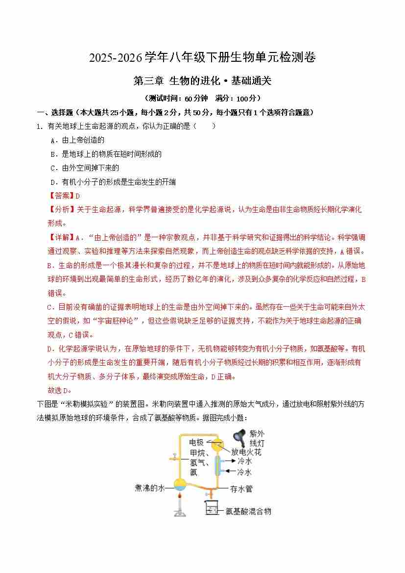 首页 > 全部 > 单元基础卷 > 第六单元第三章 生物的进化(单元测试·基础卷)(解析版)
