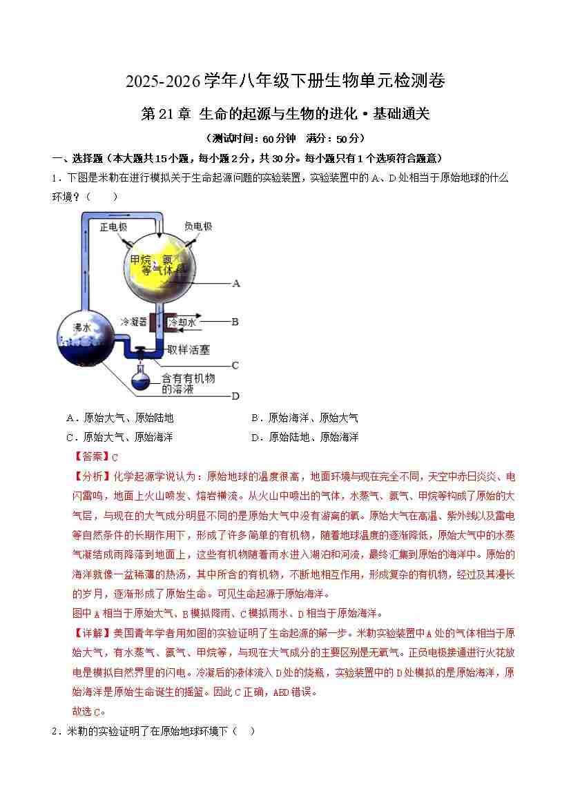 首页 > 全部 > 单元基础卷 > 第21章 生命的起源与生物的进化(单元测试·基础卷)(解析版)