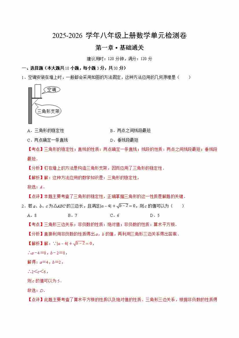 首页 > 全部 > 单元基础卷 > 八上数学第1章测试·基础卷(解析版)