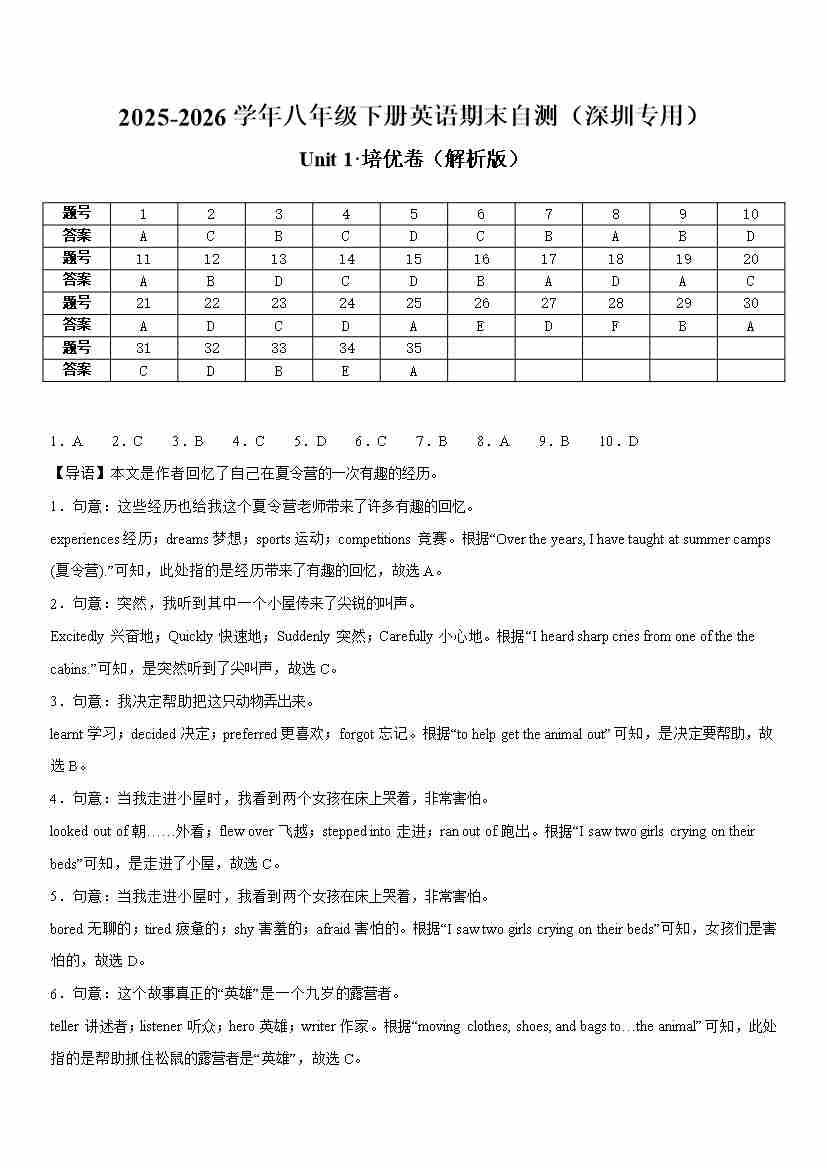八年级英语下册Unit1单元自测卷·深圳专用(解析版)