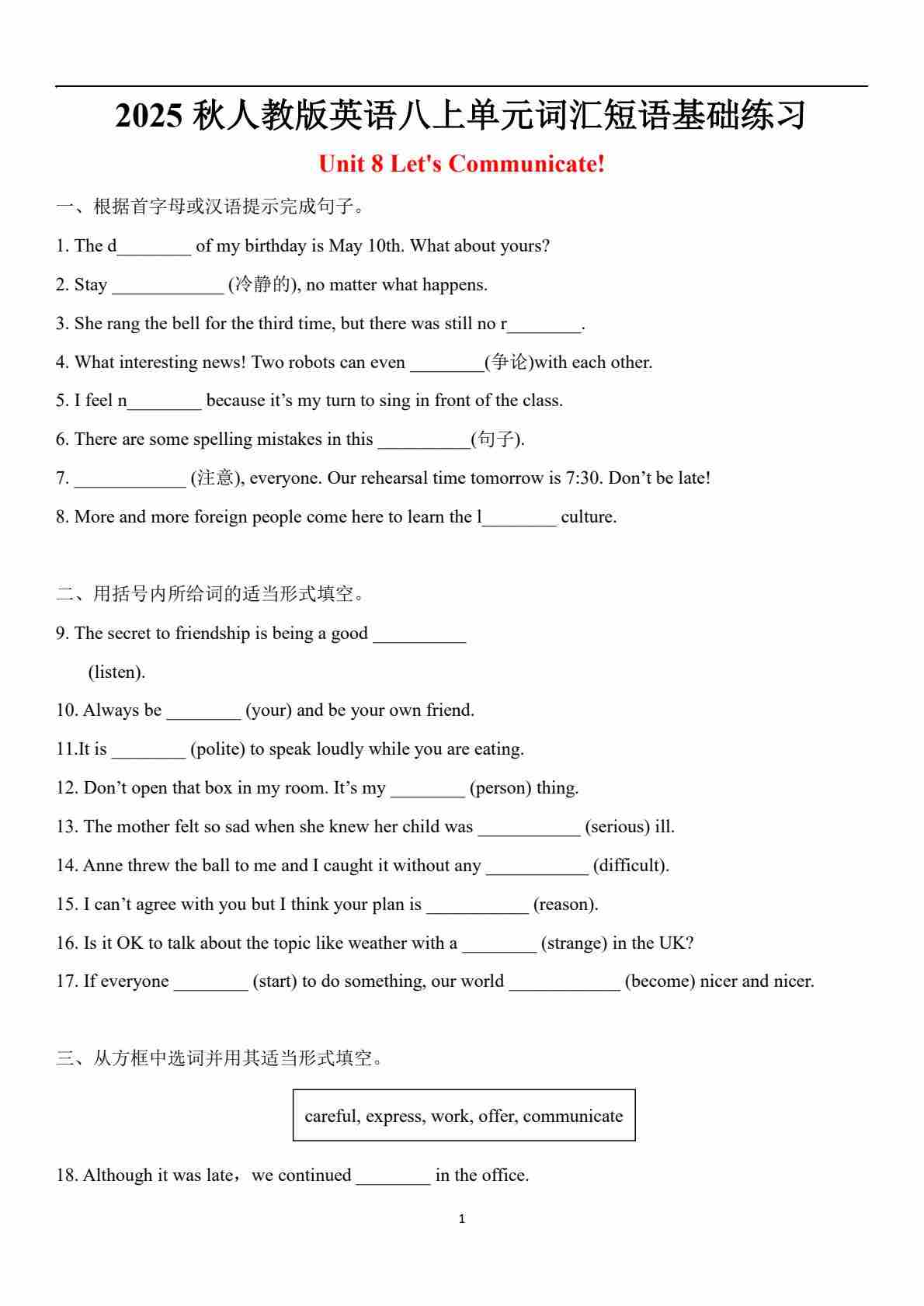 首页 > 全部 > 词汇专项 > UNIT 8 Let’s Communicate!