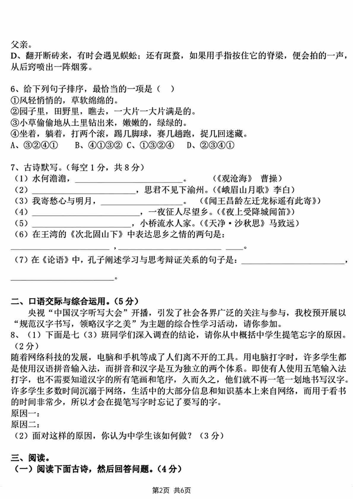 首页 > 全部 > 期中试卷 > 2024-2025学年七年级上册语文期中模拟测试卷