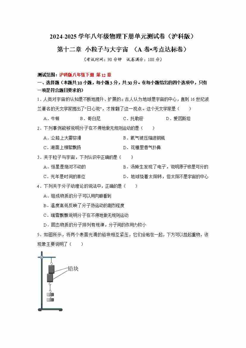 首页 > 全部 > 单元检测 > 第十二章 小粒子与大宇宙 (A卷•考点达标卷)(学生版)