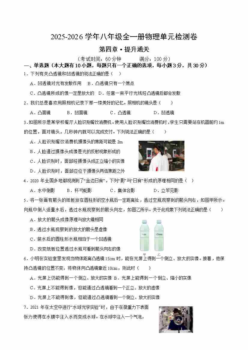 首页 > 全部 > 单元检测2 > 八上物理第四章测试·提升卷(考试版A4)