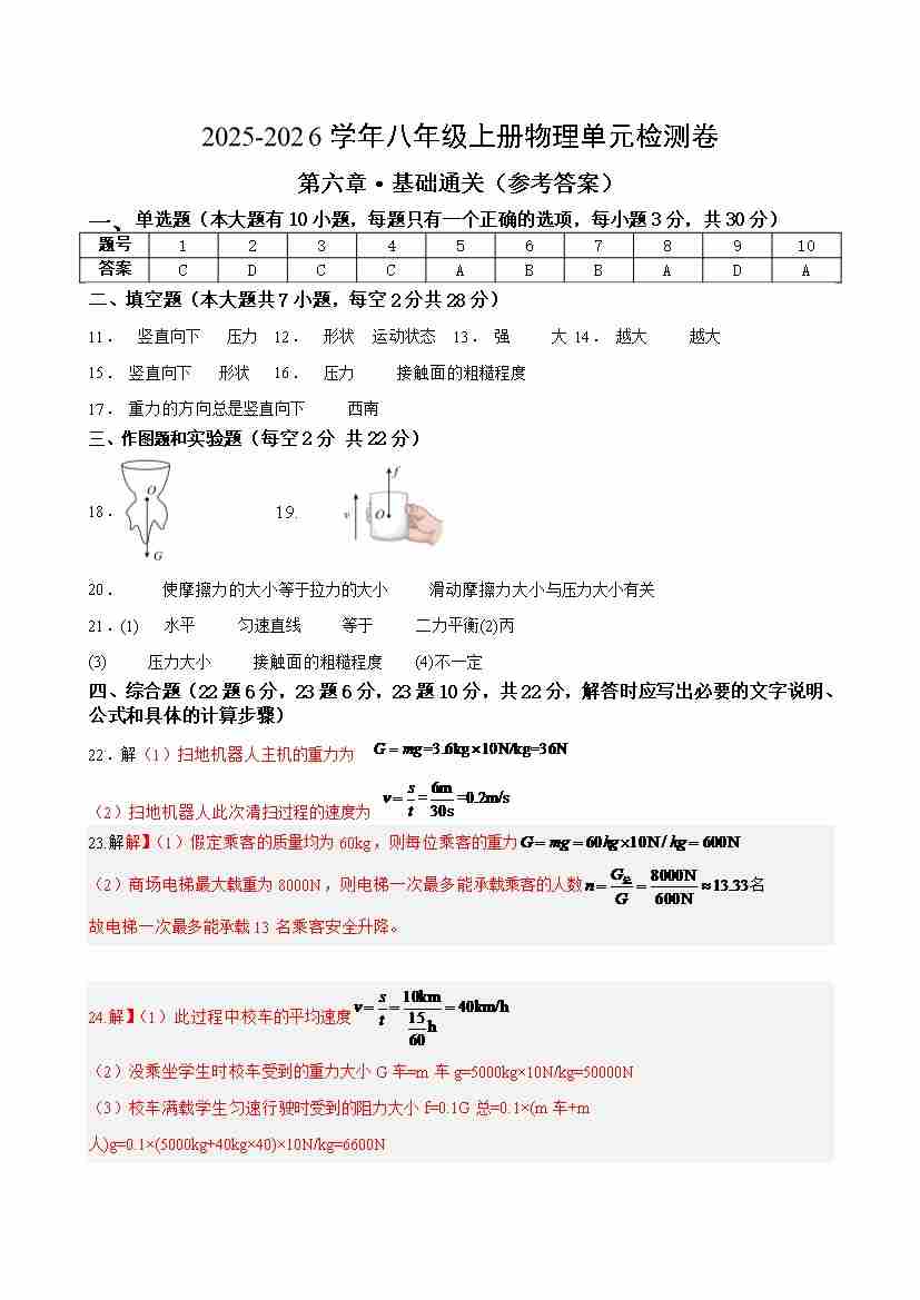 首页 > 全部 > 单元检测2 > 八上物理第六章测试·基础卷(答案及评分标准)