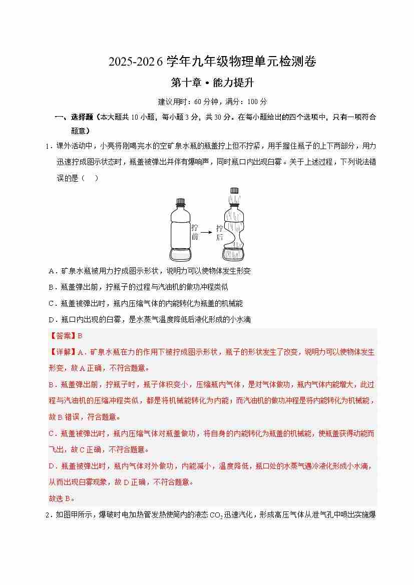 第十章 机械能、内能及其转化(单元测试·提升卷)(教师版)