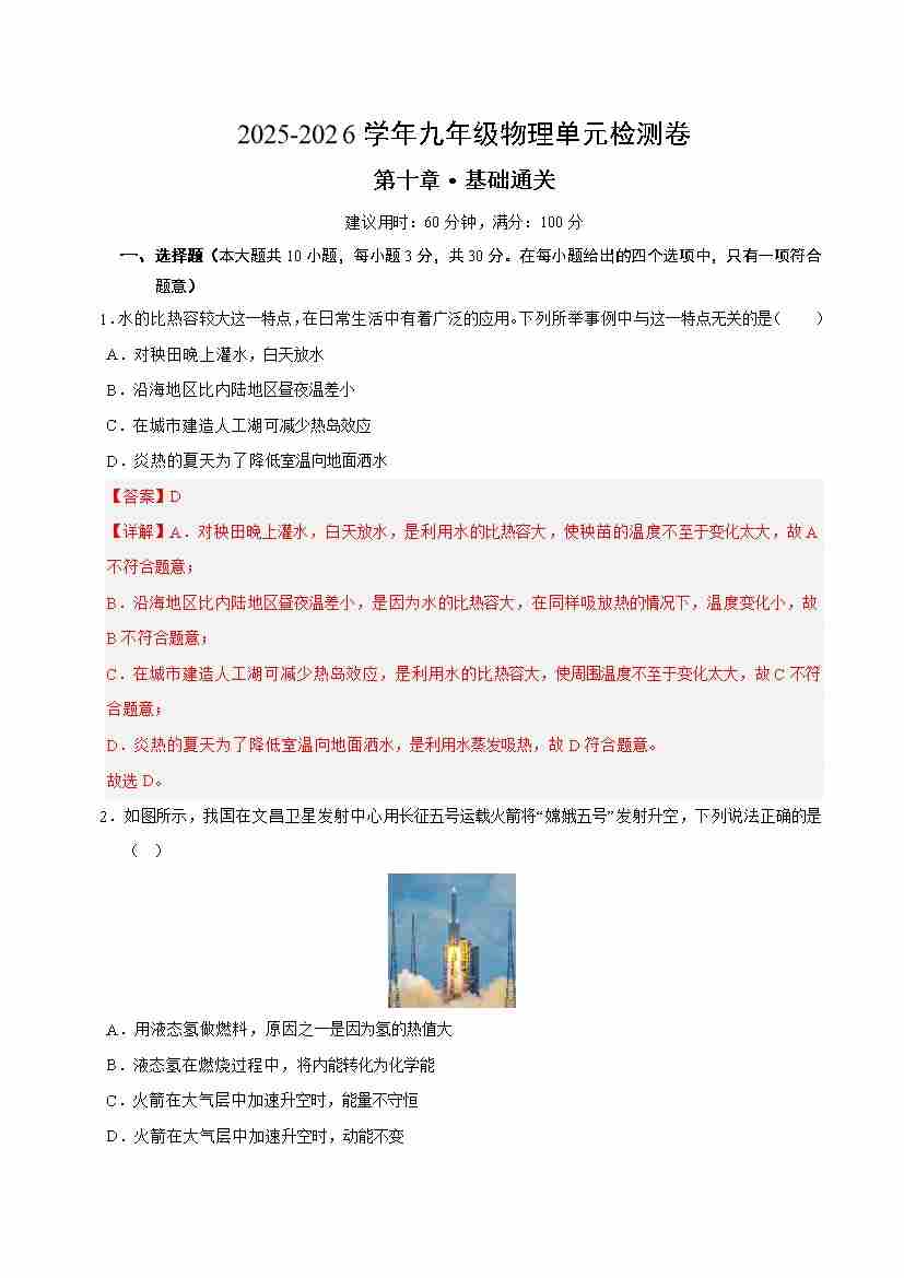 首页 > 全部 > 单元测试 > 第十章 机械能、内能及其转化(单元测试·基础卷)(教师版)