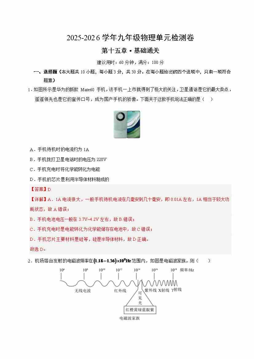 首页 > 全部 > 单元测试 > 第十五章 电磁波与通信技术(单元测试·基础卷)(教师版)