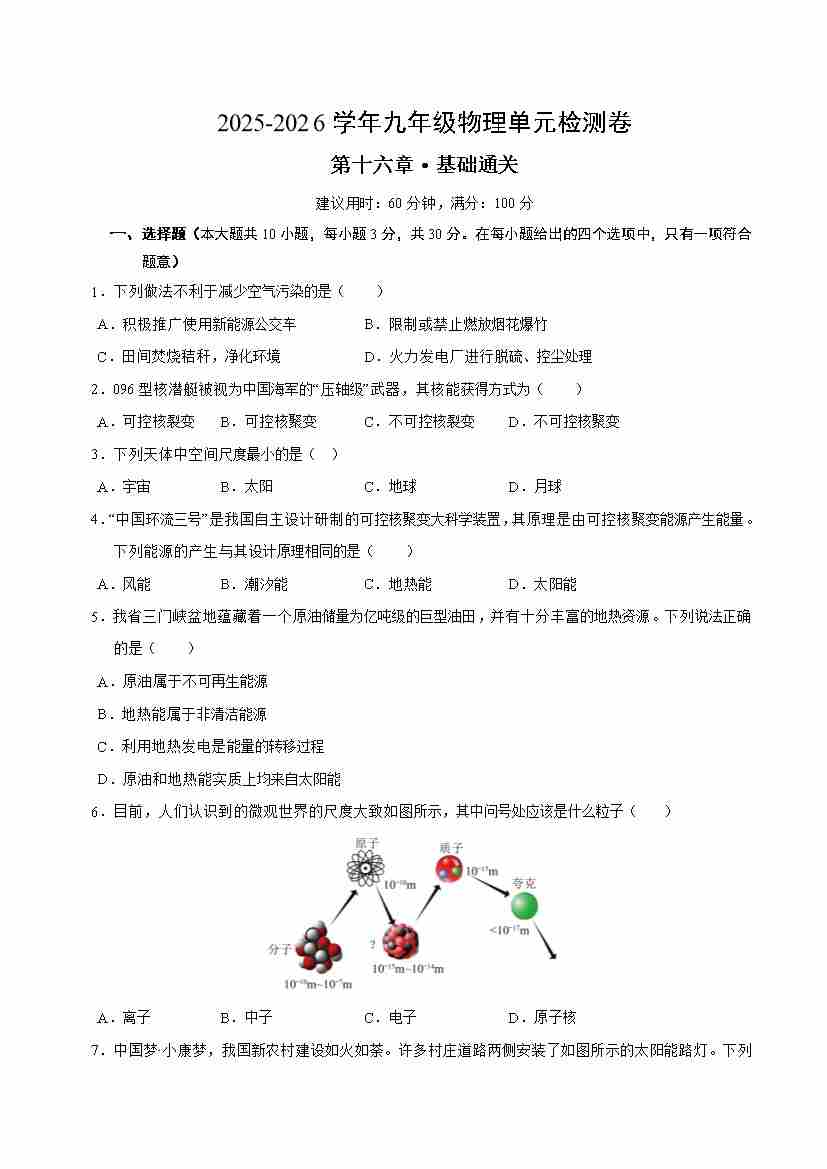 首页 > 全部 > 单元测试 > 第十六章 永恒的探索:宇宙和粒子(单元测试·基础卷)(考试版A4)