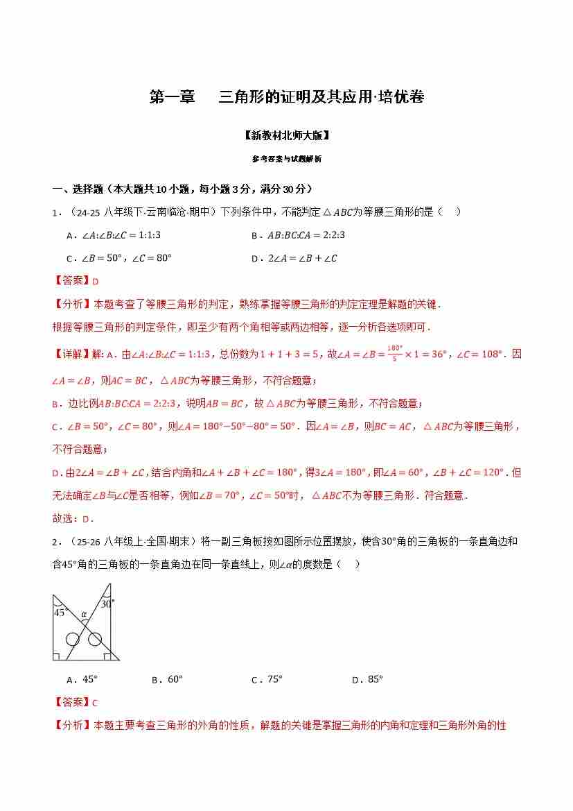 第一章 三角形的证明及其应用(举一反三单元自测·培优卷)(解析版)