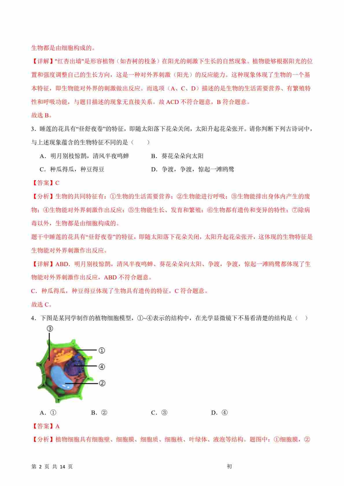 首页 > 全部 > 期末试卷 > 七上生物期末冲刺卷03(能力提升卷)(解析版)