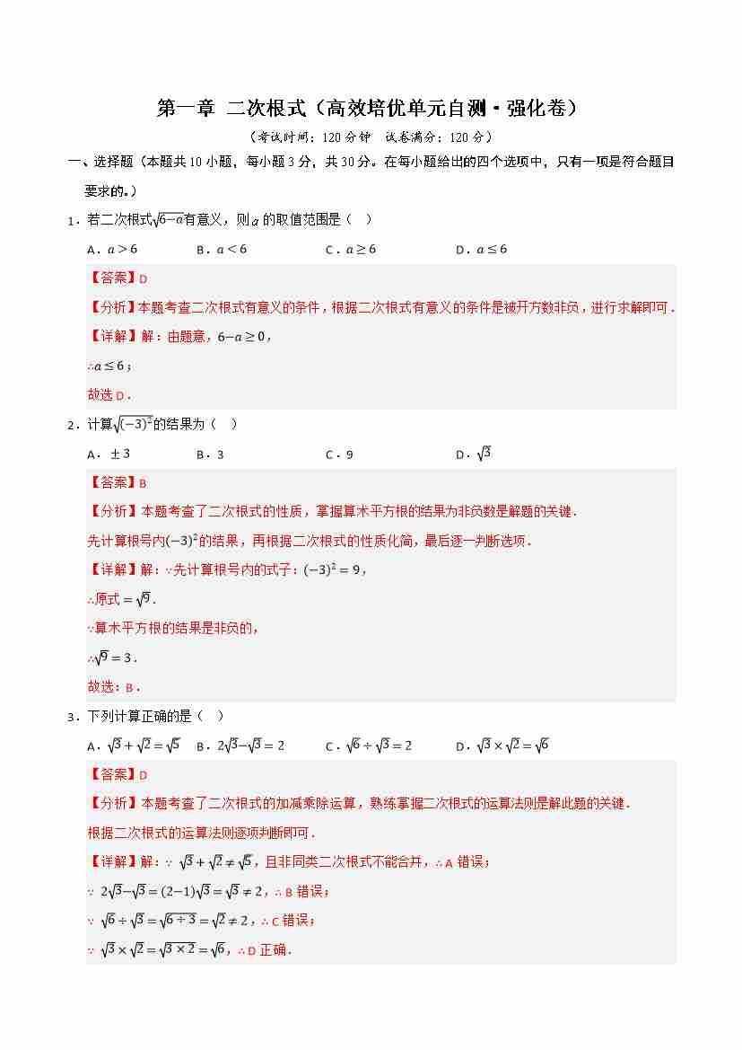 第1章 二次根式(高效培优单元自测·强化卷)(解析版)