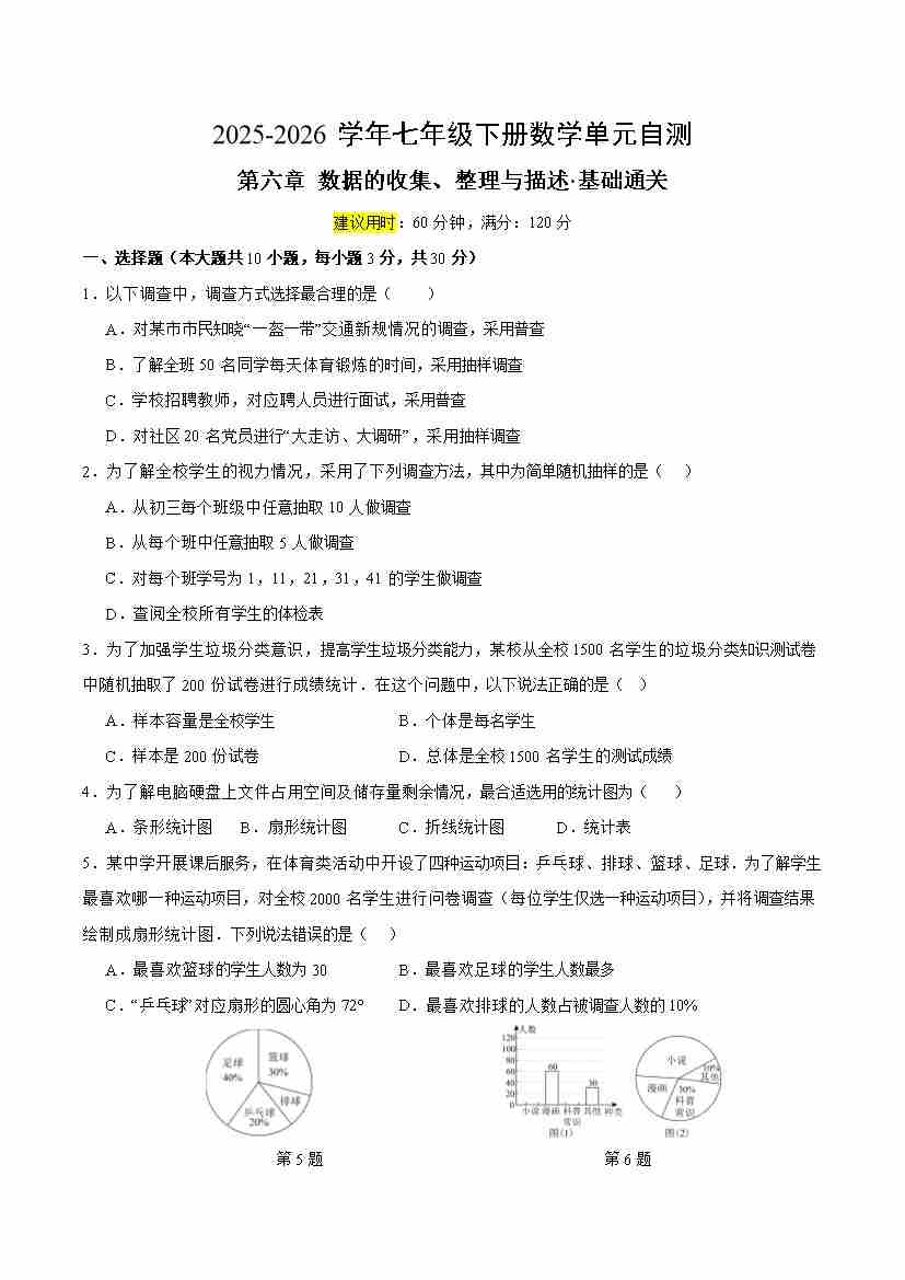 八下数学第六章 数据的收集、整理与描述·基础卷(试题版A4)