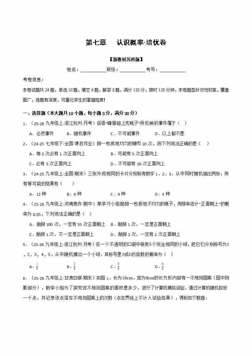 首页 > 全部 > 举义反三 > 第七章 认识概率(举一反三单元自测·培优卷)(试题版)