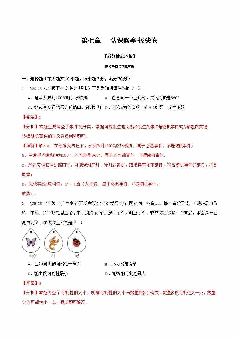 首页 > 全部 > 举义反三 > 第七章 认识概率(举一反三单元自测·拔尖卷)(解析版)