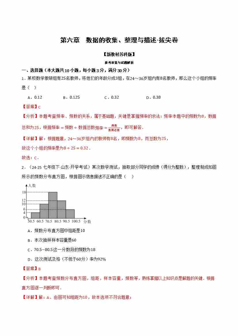第六章 数据的收集、整理与描述(举一反三单元自测·拔尖卷)(解析版)