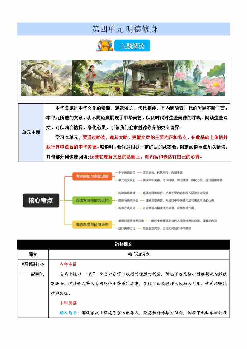 第四单元 “明德修身”主题阅读(讲义)(原卷版)