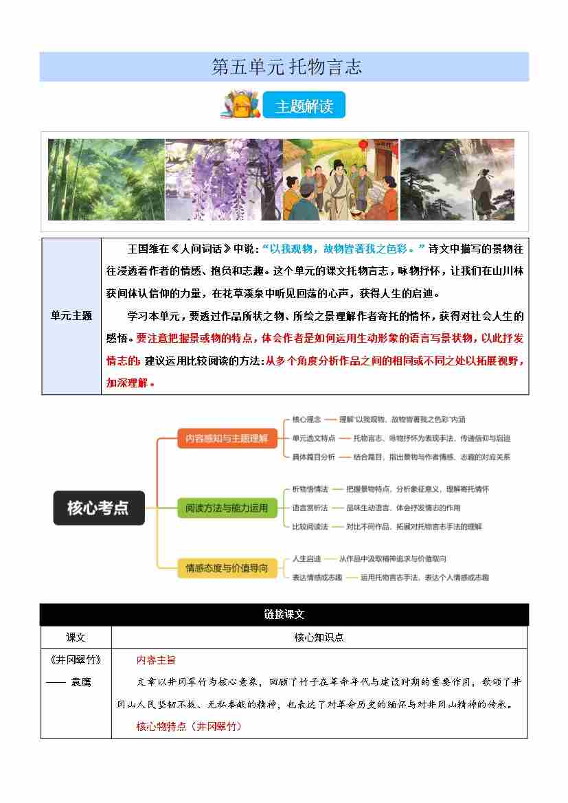 首页 > 全部 > 主题阅读 > 第五单元 “托物言志”主题阅读(讲义)(原卷版)