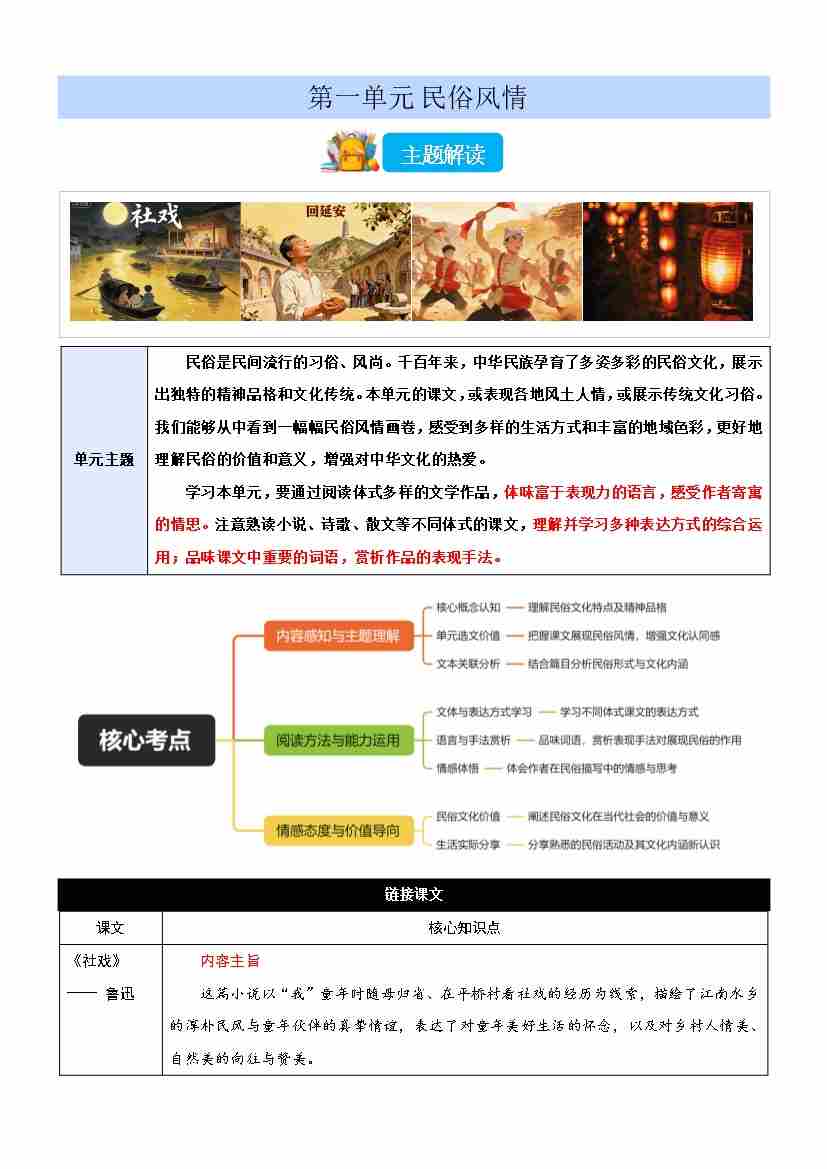 首页 > 全部 > 主题阅读 > 第一单元 “民俗风情”主题阅读(讲义)(解析版)