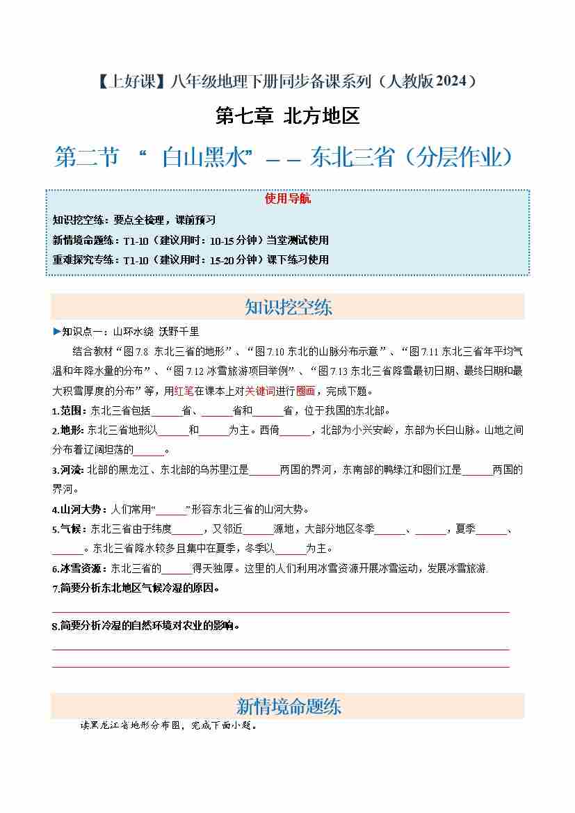 7.2.1“白山黑水”——东北三省(分层作业)(原卷版)
