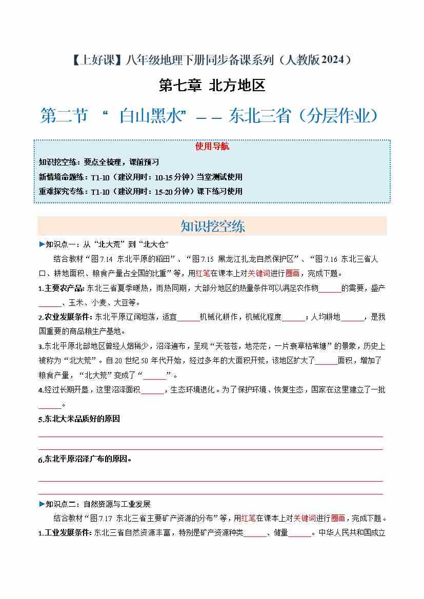 首页 > 全部 > 分层作业 > 7.2.2“白山黑水”——东北三省(分层作业)(原卷版)