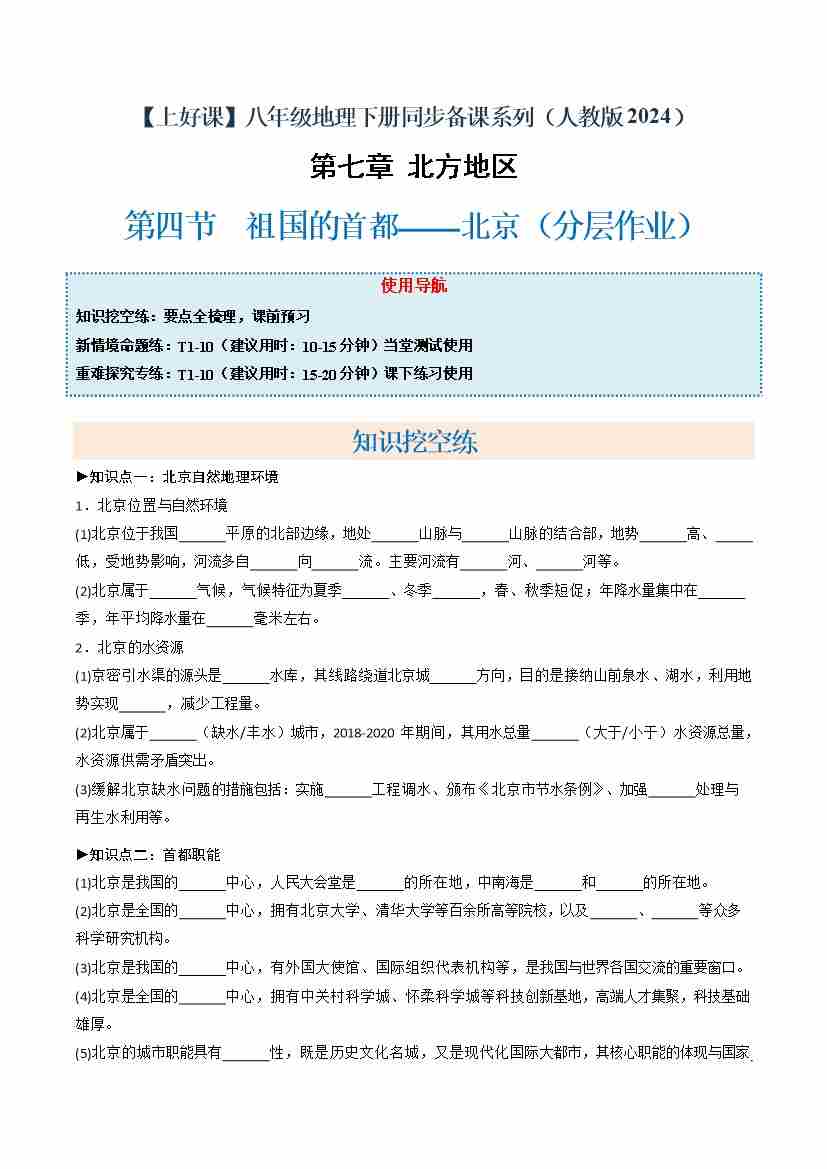 首页 > 全部 > 分层作业 > 7.4 祖国的首都——北京(分层作业)(原卷版)