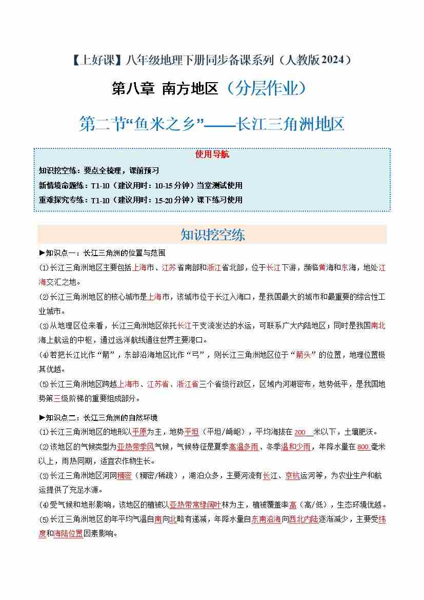 首页 > 全部 > 分层作业 > 8.2“鱼米之乡”——长江三角洲地区(分层作业)(解析版)