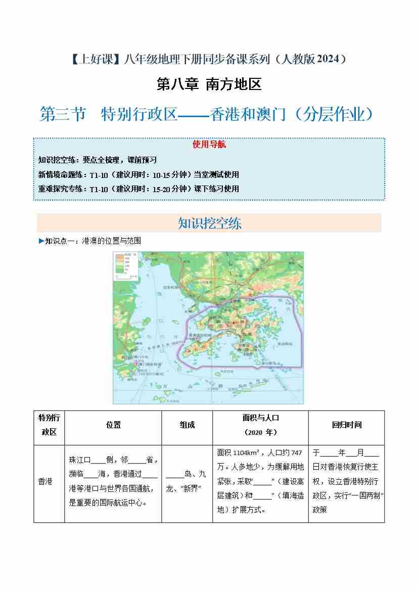 8.3 特别行政区——香港和澳门(分层作业)(原卷版)