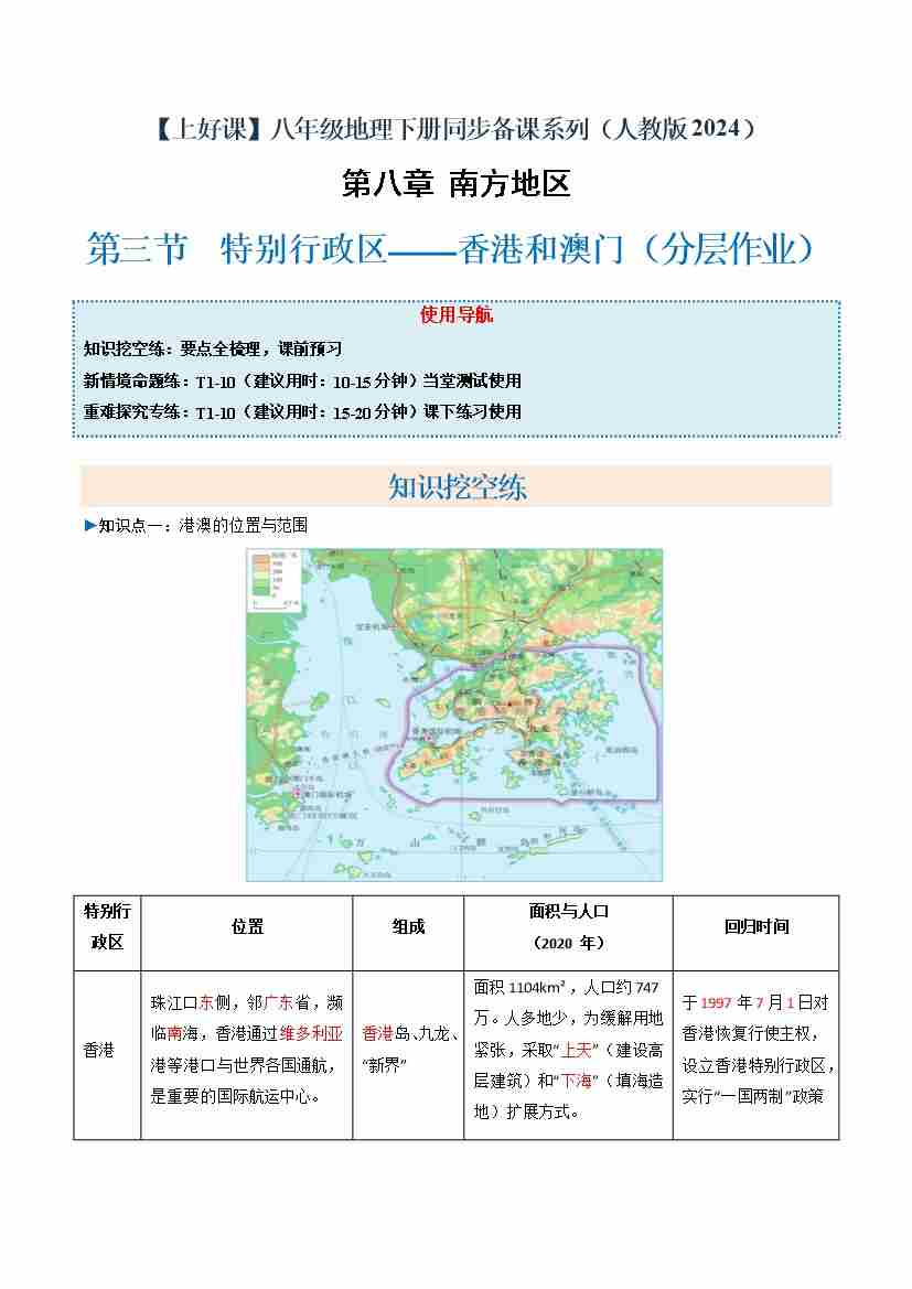 首页 > 全部 > 分层作业 > 8.3 特别行政区——香港和澳门(分层作业)(解析版)