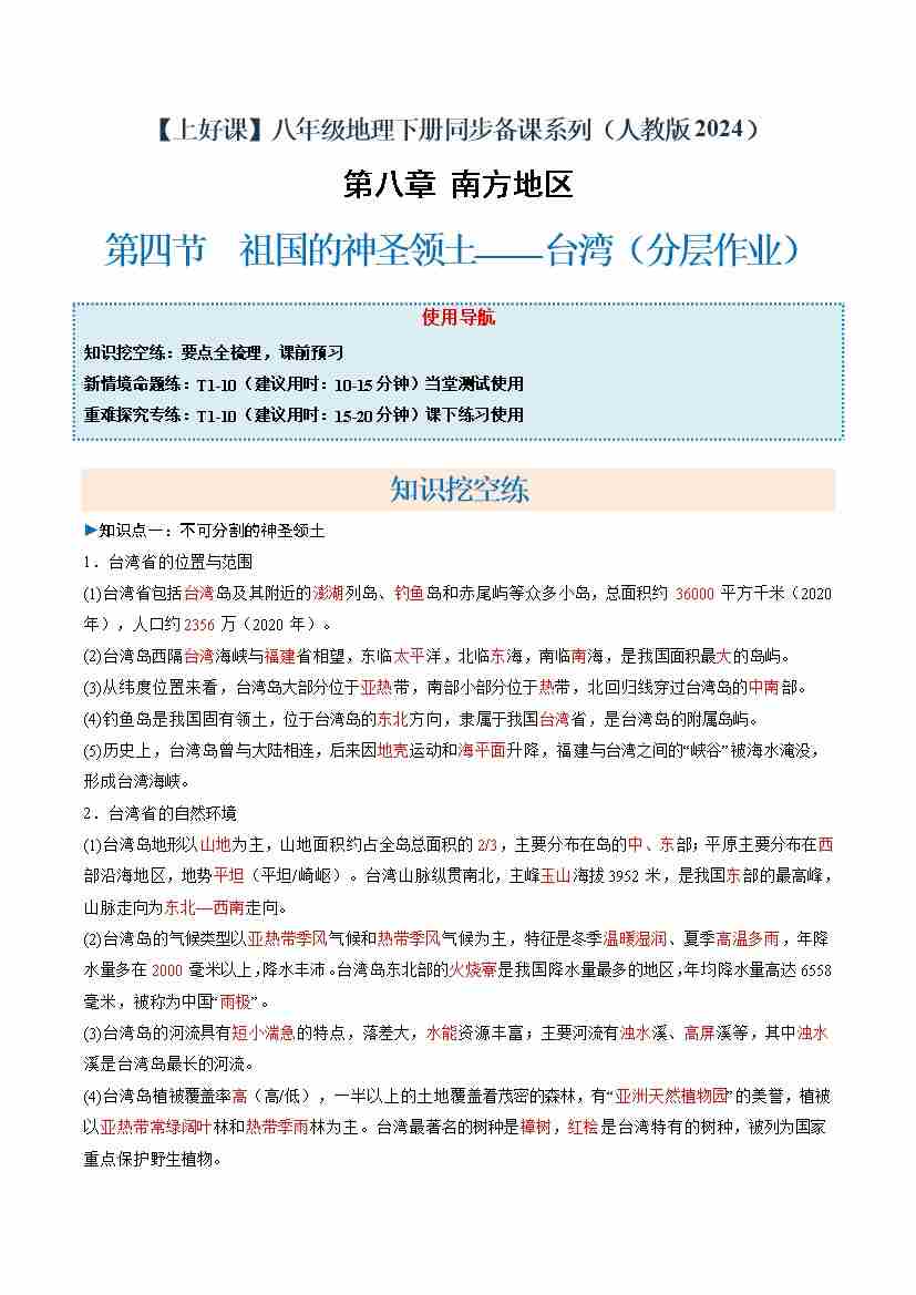 首页 > 全部 > 分层作业 > 8.4 祖国的神圣领土——台湾(分层作业)(解析版)