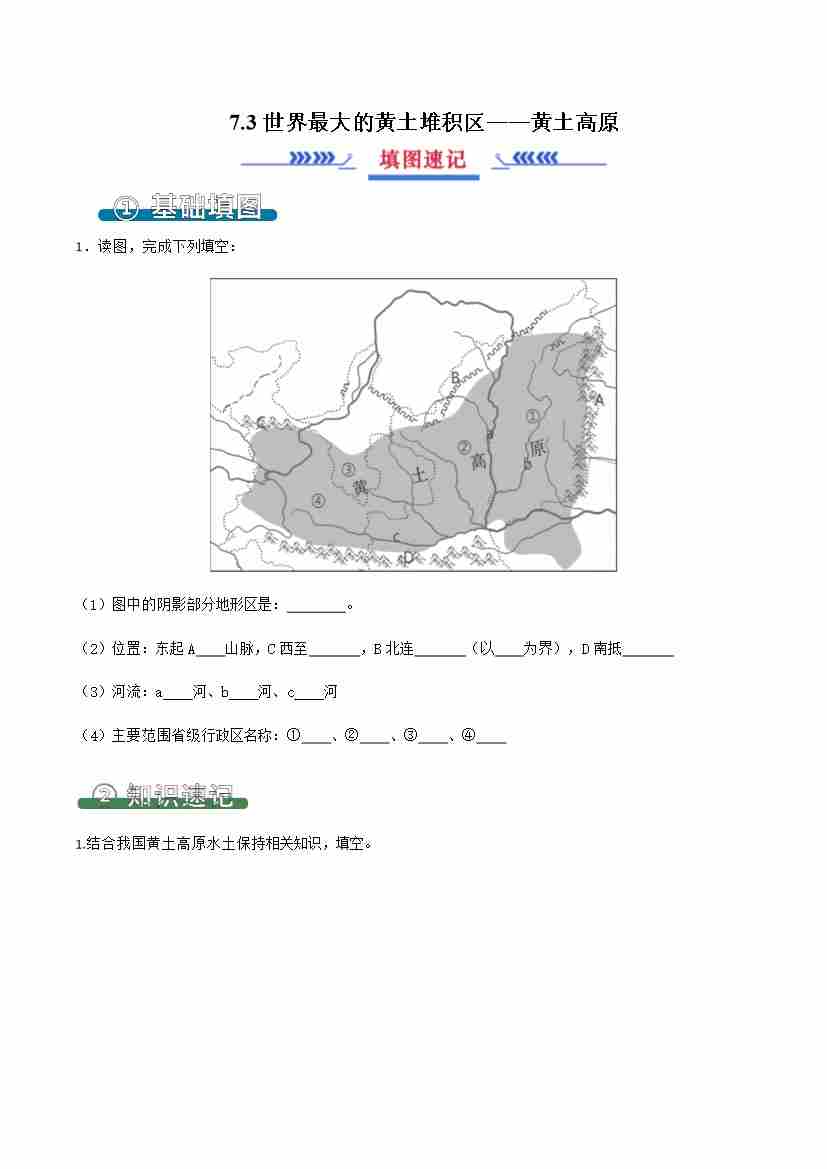 7.3世界最大的黄土堆积区——黄土高原(填图速记)原卷版