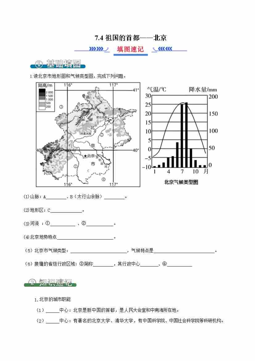 7.4祖国的首都——北京(填图速记)原卷版