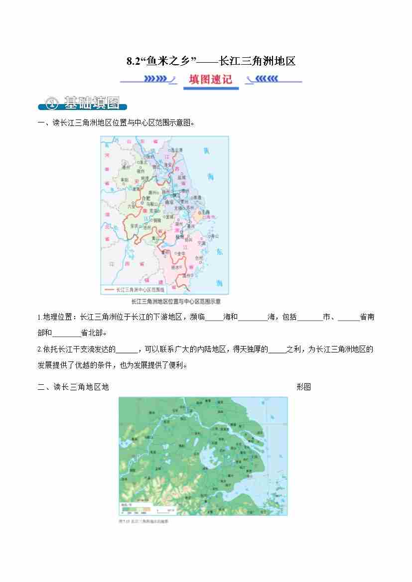 8.2“鱼米之乡”——长江三角洲地区(填图速记)原卷版