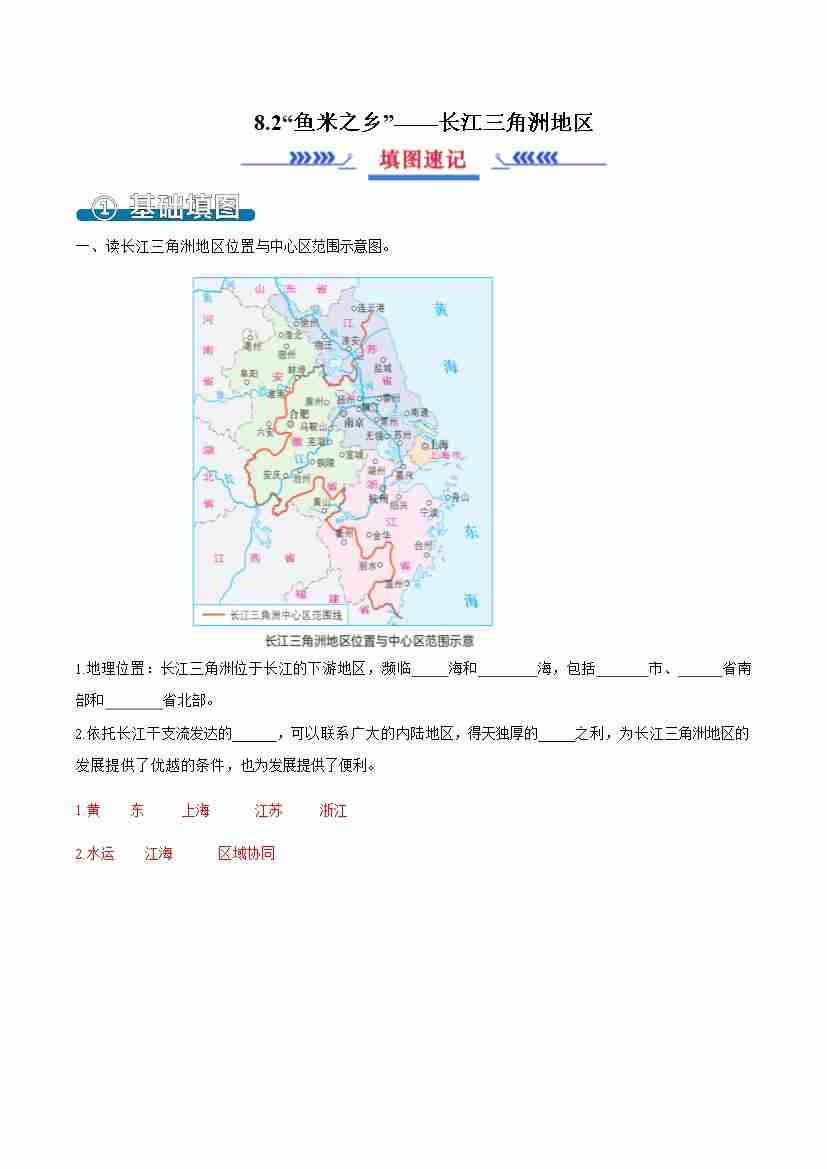 首页 > 全部 > 填图练习 > 8.2“鱼米之乡”——长江三角洲地区(填图速记)解析版