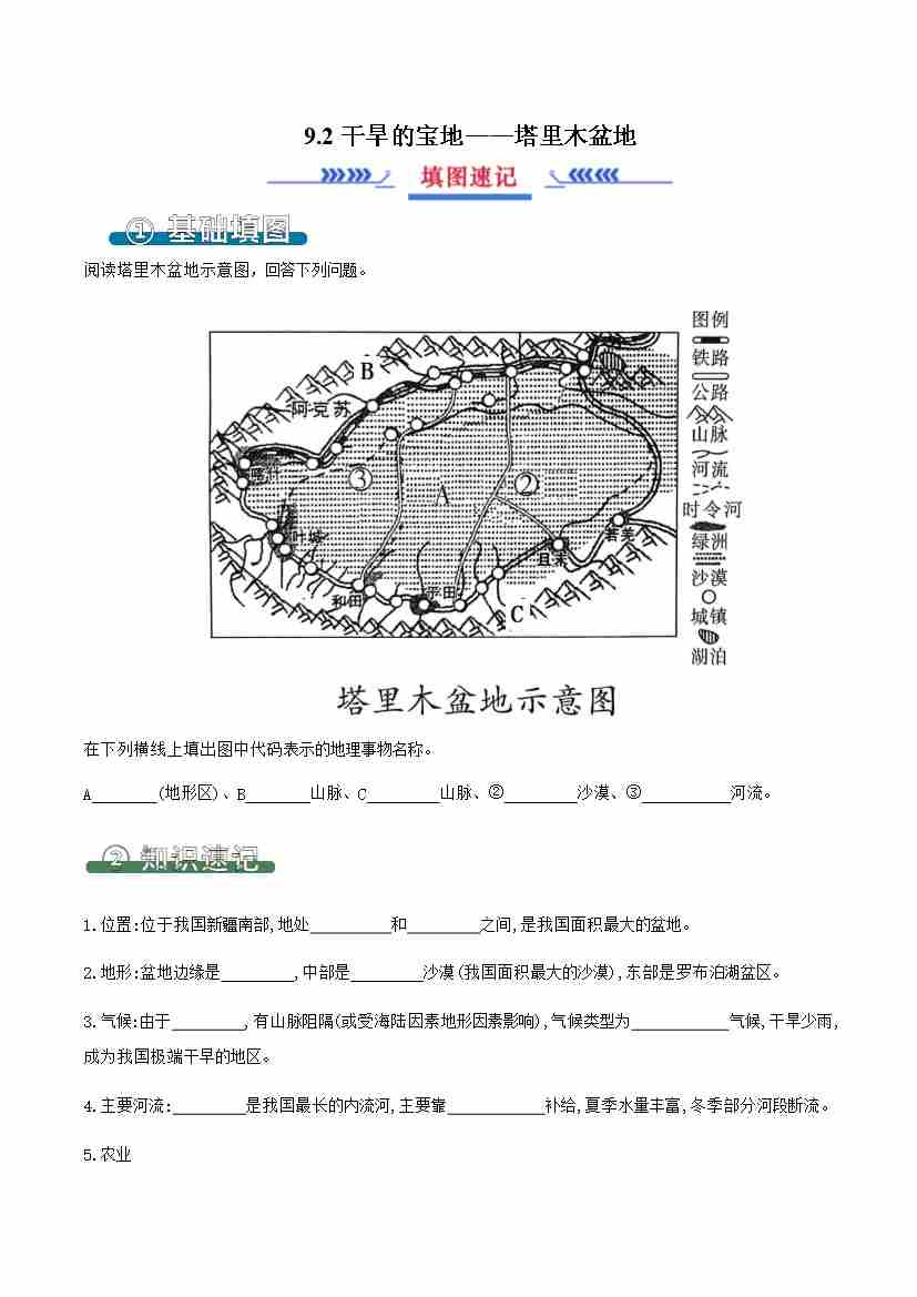 首页 > 全部 > 填图练习 > 9.2干旱的宝地——塔里木盆地(填图速)原卷版