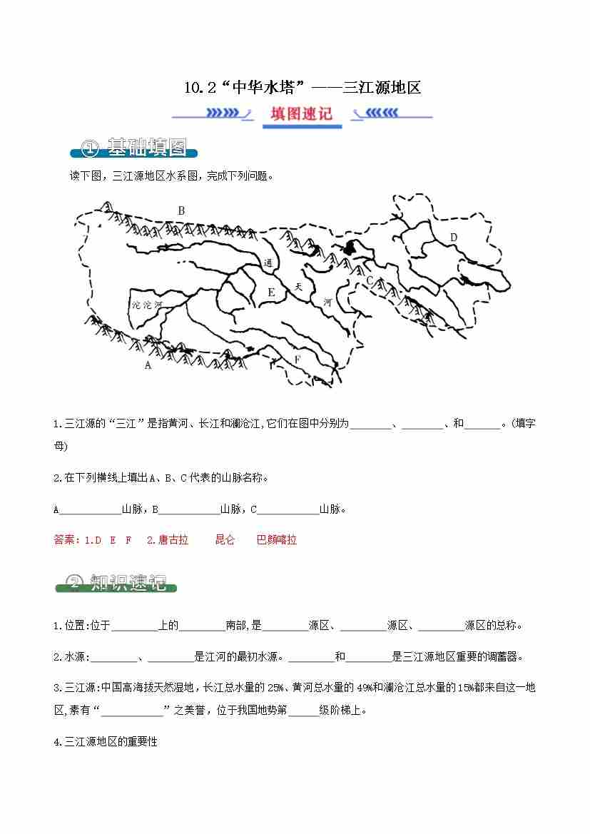 10.2“中华水塔”——三江源地区(填图速)解析版