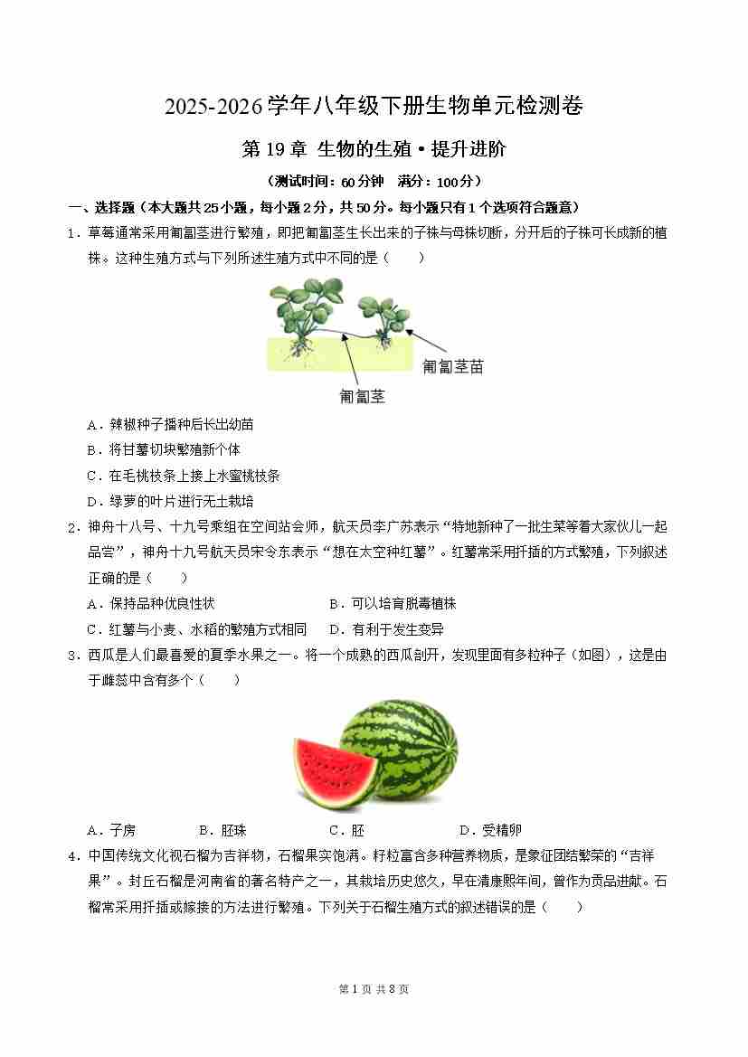 首页 > 全部 > 单元提升卷 > 第19章 生物的生殖(单元测试·提升卷)(考试版A4)
