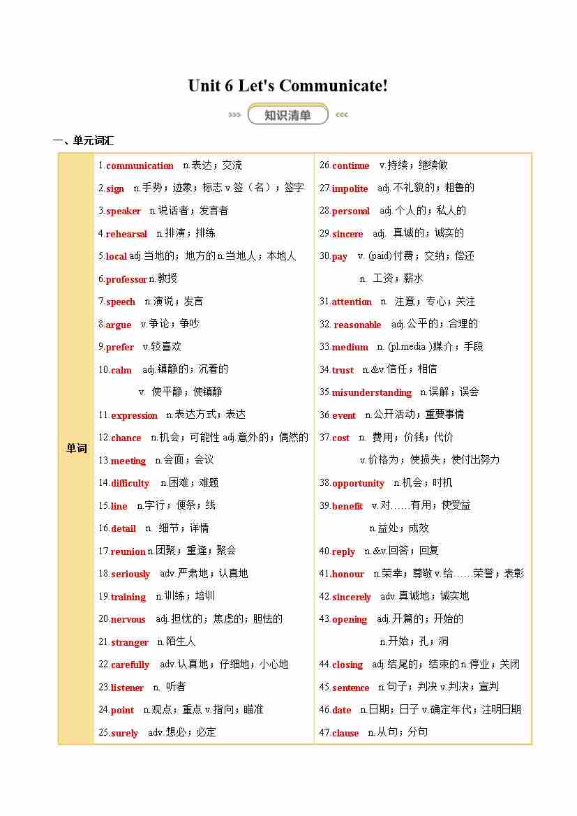 Unit 6 Let's Communicate!(知识清单)(答案版)