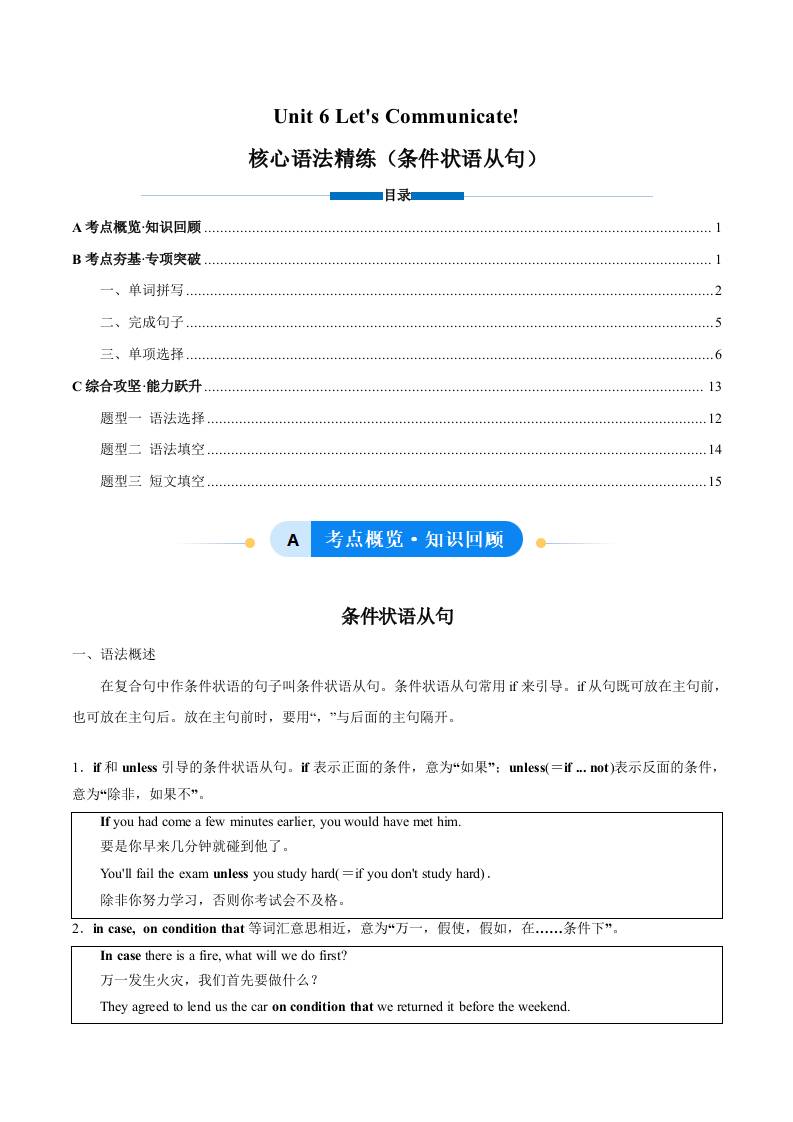 首页 > 全部 > 语法精练 > Unit 6 Let's Communicate!条件状语从句单元核心语法精练(解析版)