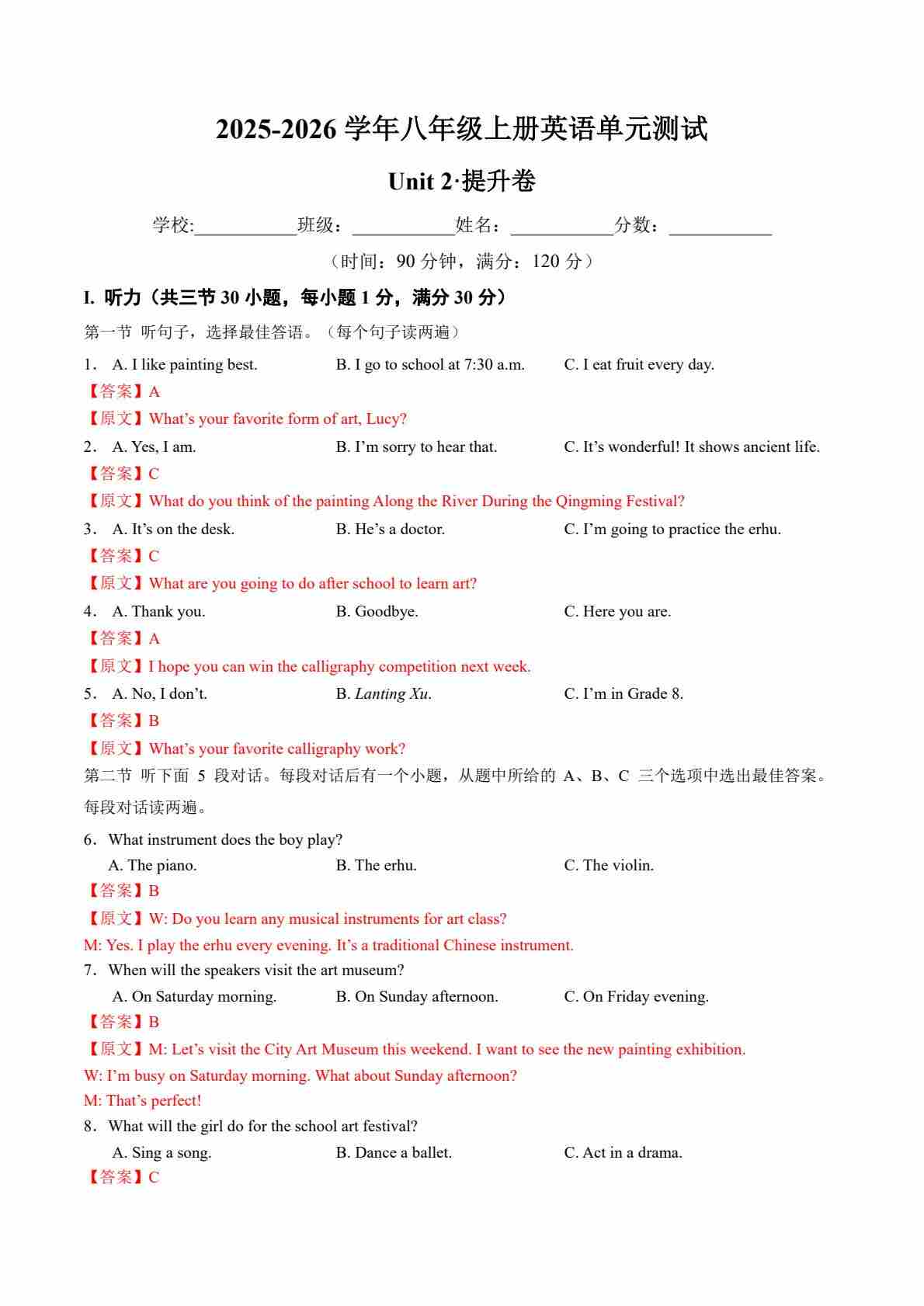首页 > 全部 > 单元提升卷 > 八年级英语上册Unit 2 单元测试·提升卷(全解全析)
