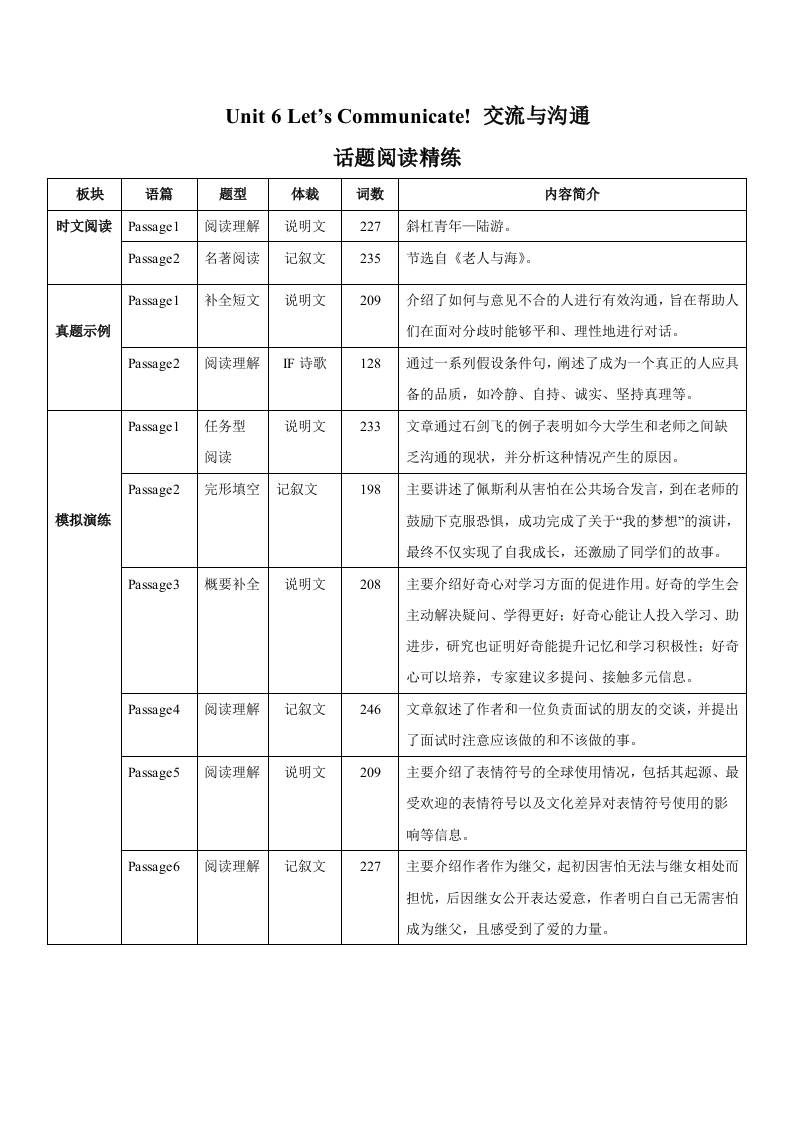 首页 > 全部 > 话题阅题 > Unit 6 Let's communicate! 人与社会沟通话题阅读精练(解析版)