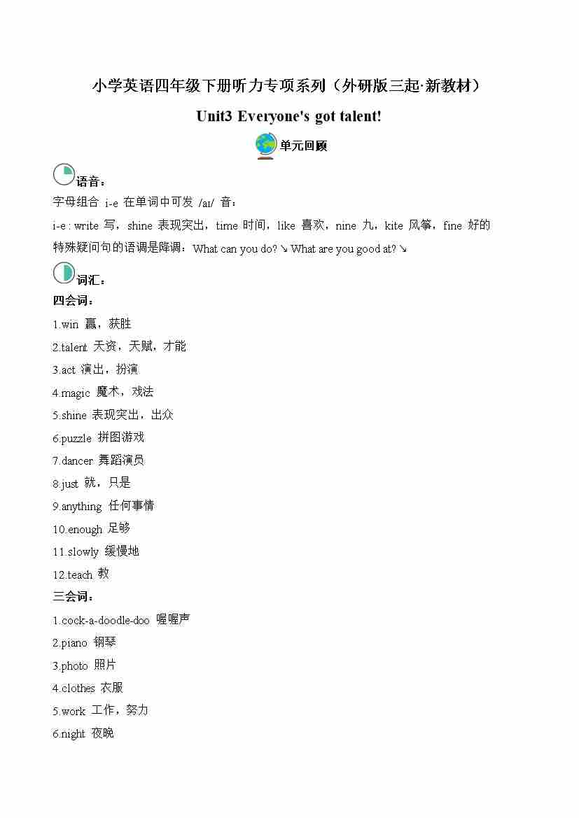 Unit 3 Everyone's got talent!(单元听力专项训练)(新教材)
