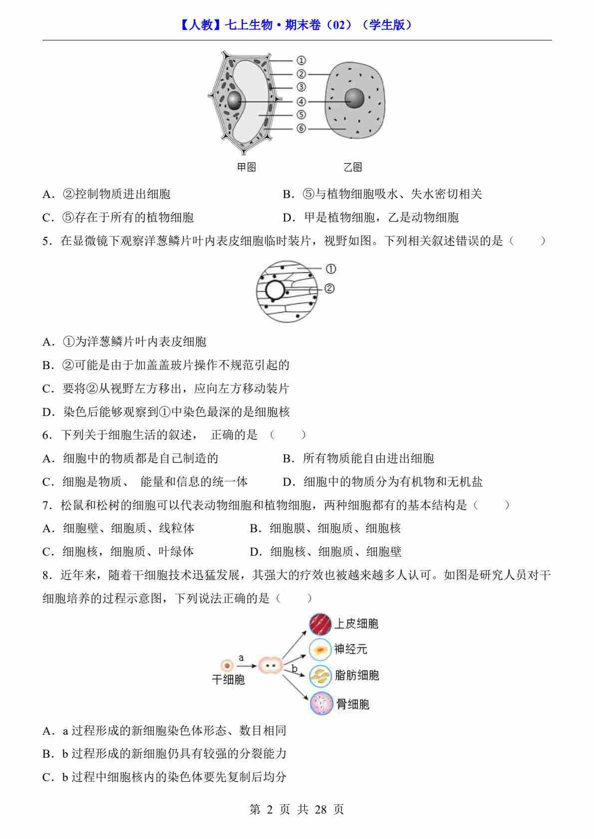 首页 > 全部 > 期末试卷 > 【人教】7上生物期末卷02【七上全册】