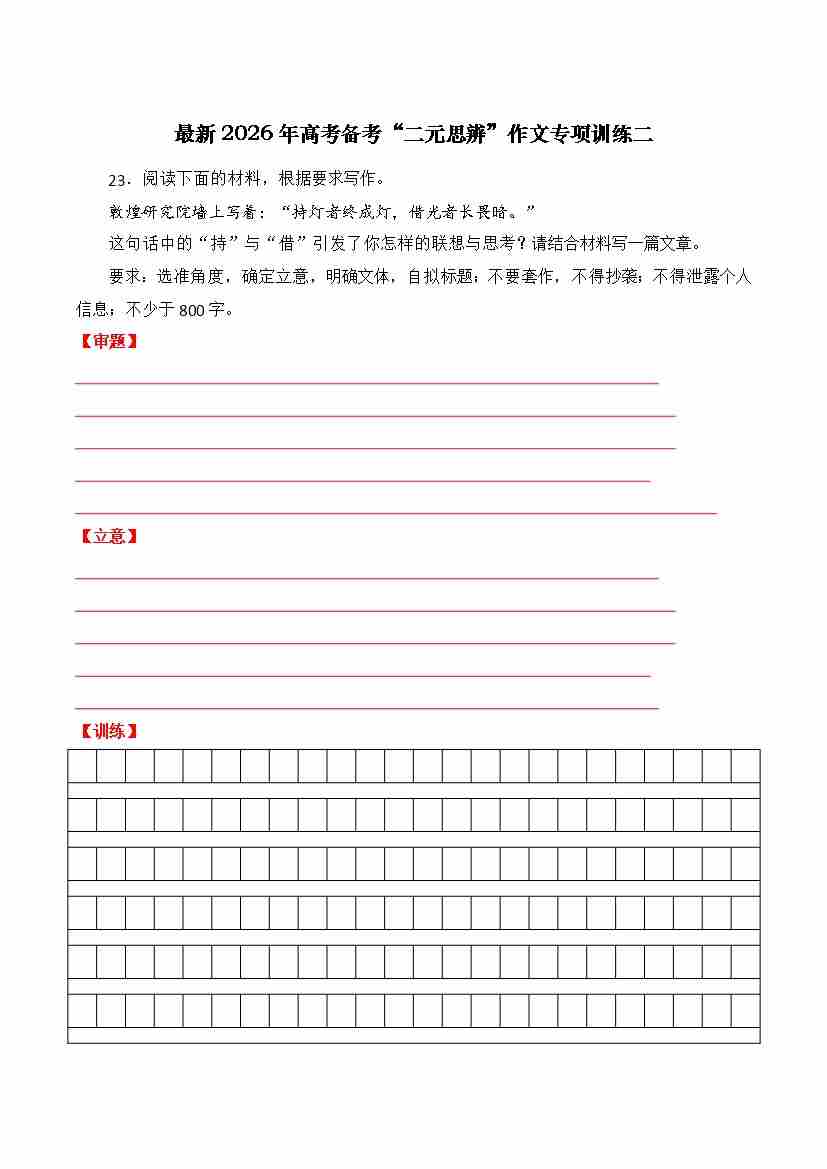 首页 > 全部 > 重难点备考 > 高考备考“二元思辨”作文专项训练二(学生版)